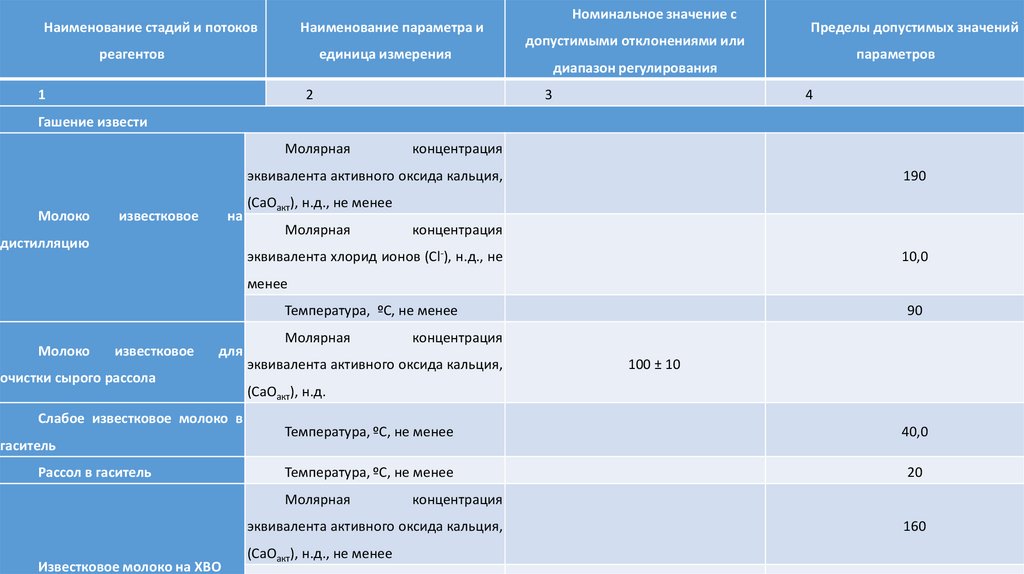гашения, своевременная регулировка дозировки реагентов и предотвращение перегрева и