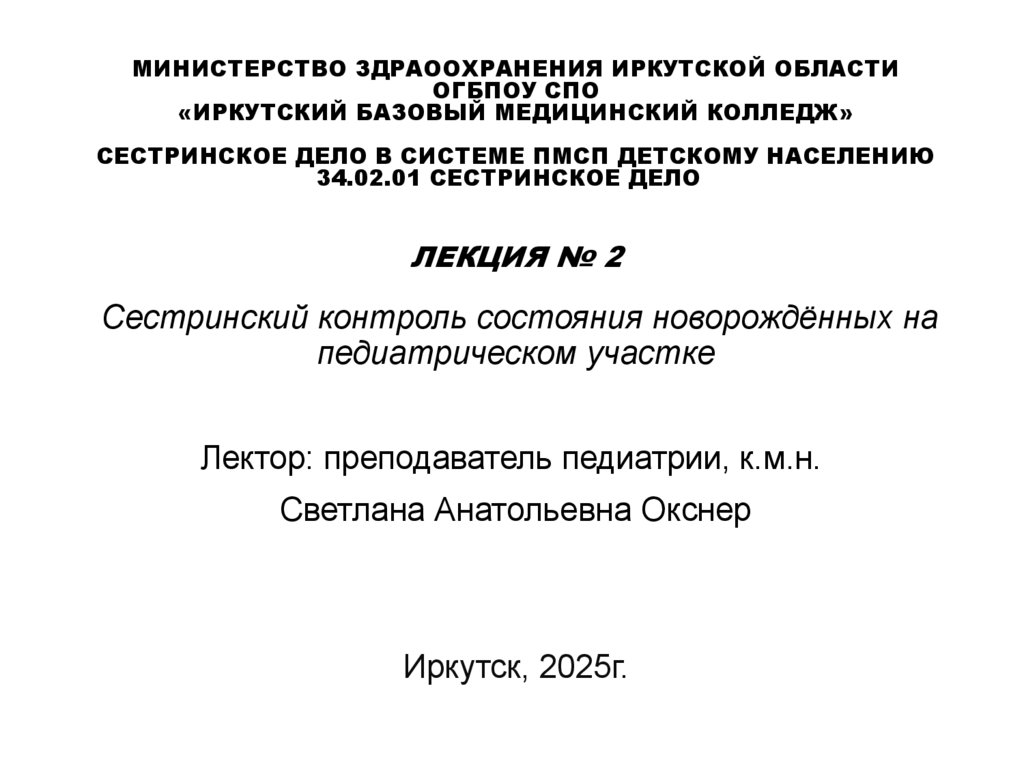 Лектор: преподаватель педиатрии, к.м.н.