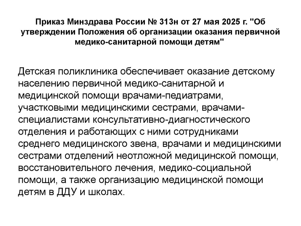 Приказ Минздрава России № 313н от 27 мая 2025 г. "Обутверждении Положения об организации оказания первичной