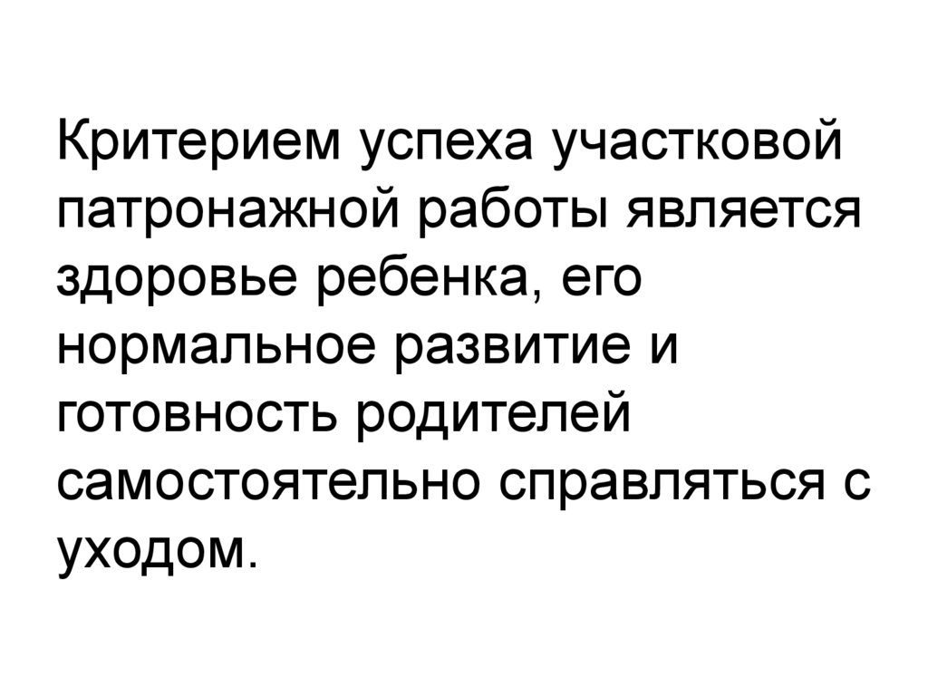 Критерием успеха участковойпатронажной работы является