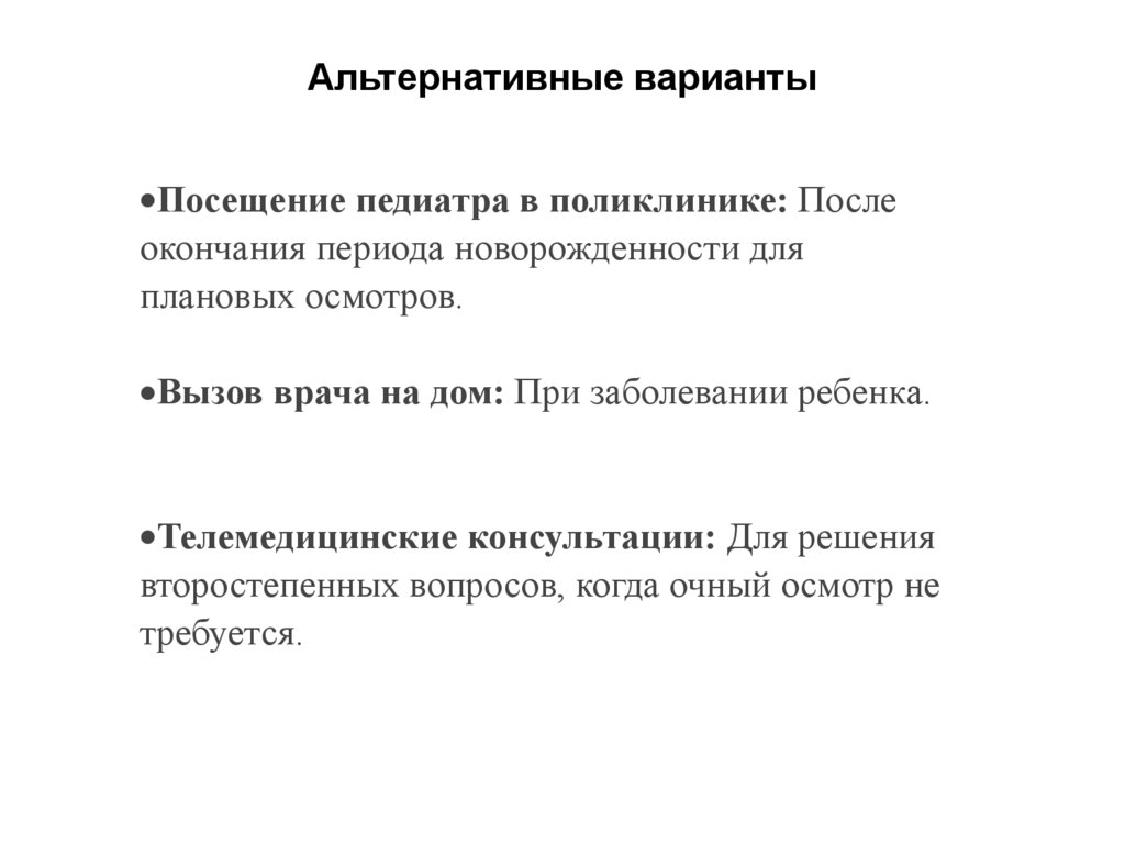 Альтернативные вариантыПосещение педиатра в поликлинике: После