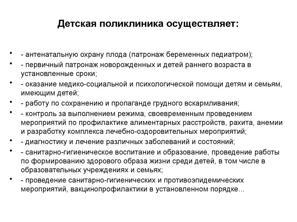 Детская поликлиника осуществляет:- антенатальную охрану плода (патронаж беременных педиатром);