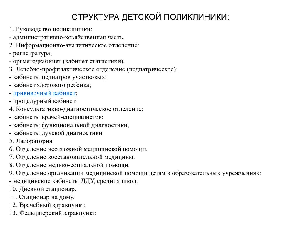СТРУКТУРА ДЕТСКОЙ ПОЛИКЛИНИКИ:1. Руководство поликлиники: