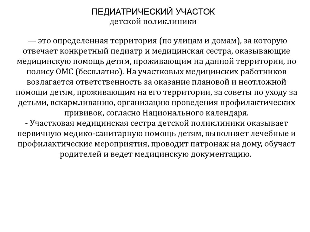 ПЕДИАТРИЧЕСКИЙ УЧАСТОКдетской поликлиники