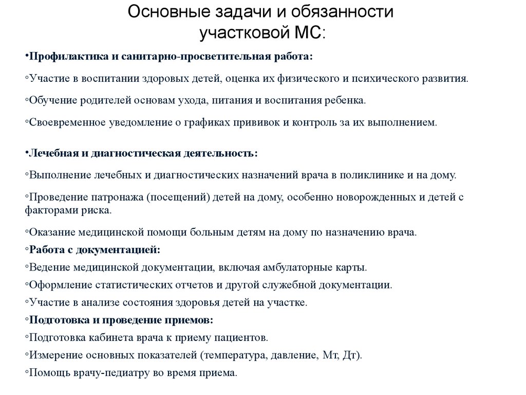 Основные задачи и обязанностиучастковой МС: