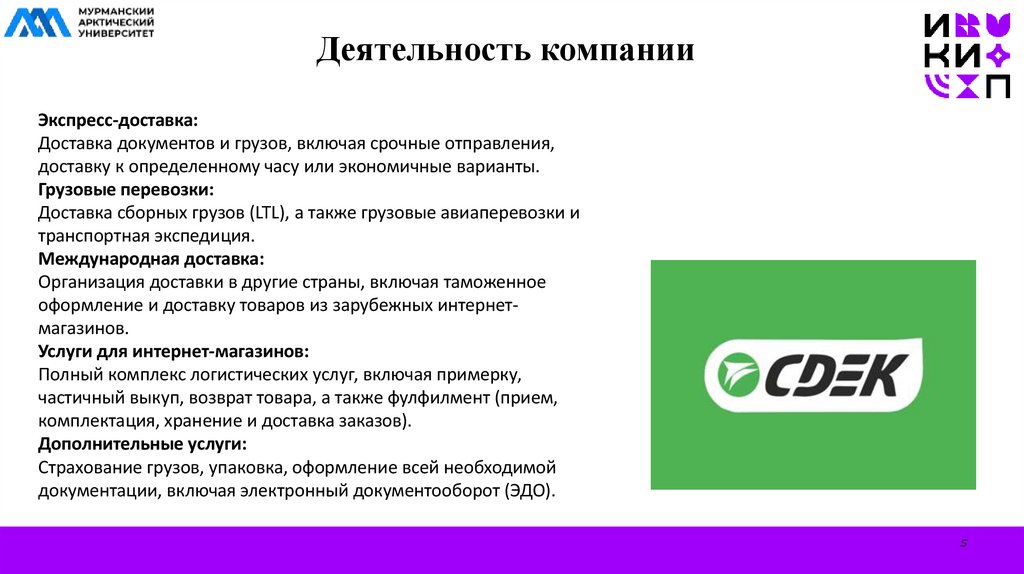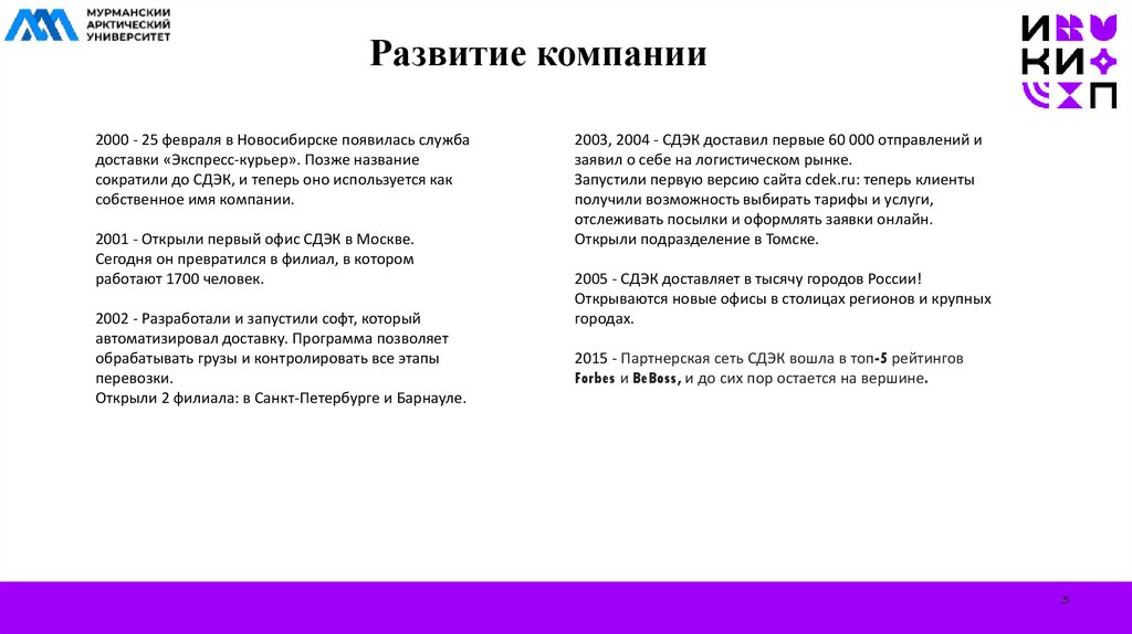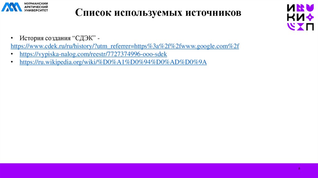 Список используемых источников• История создания “СДЭК” https://www.cdek.ru/ru/history/?utm_referrer=https%3a%2f%2fwww.google.com%2f