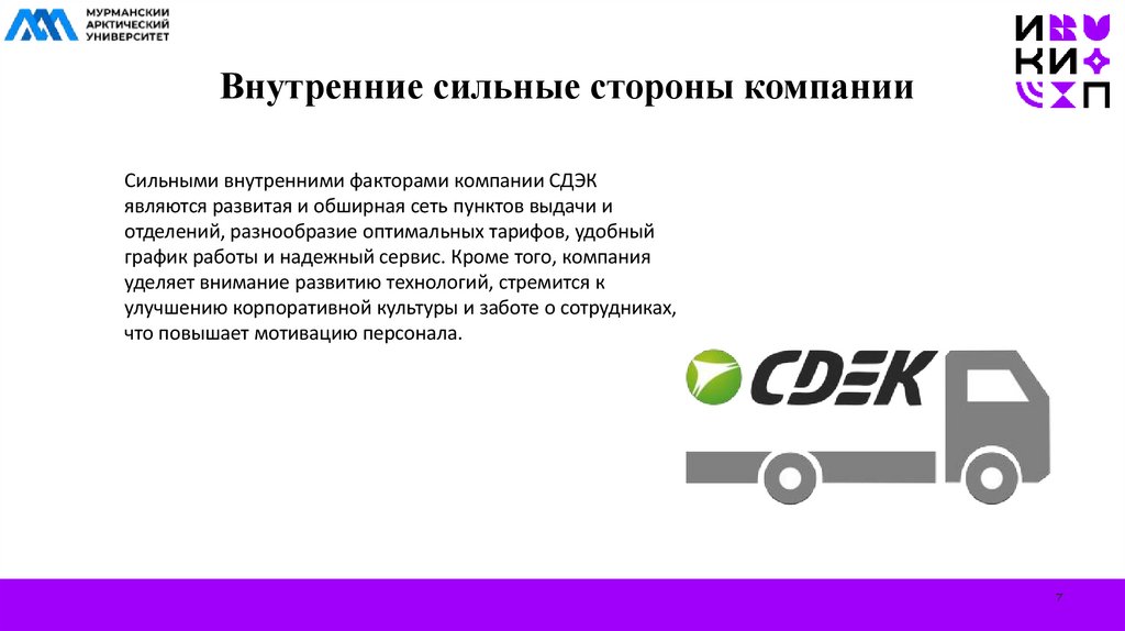 Внутренние сильные стороны компанииСильными внутренними факторами компании СДЭК