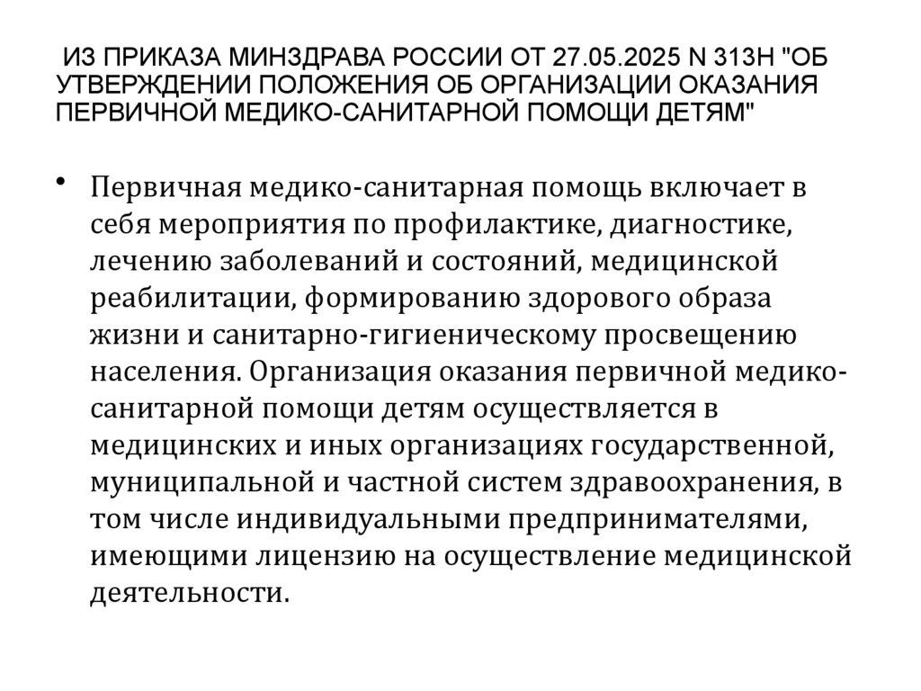 ИЗ ПРИКАЗА МИНЗДРАВА РОССИИ ОТ 27.05.2025 N 313Н "ОБУТВЕРЖДЕНИИ ПОЛОЖЕНИЯ ОБ ОРГАНИЗАЦИИ ОКАЗАНИЯ