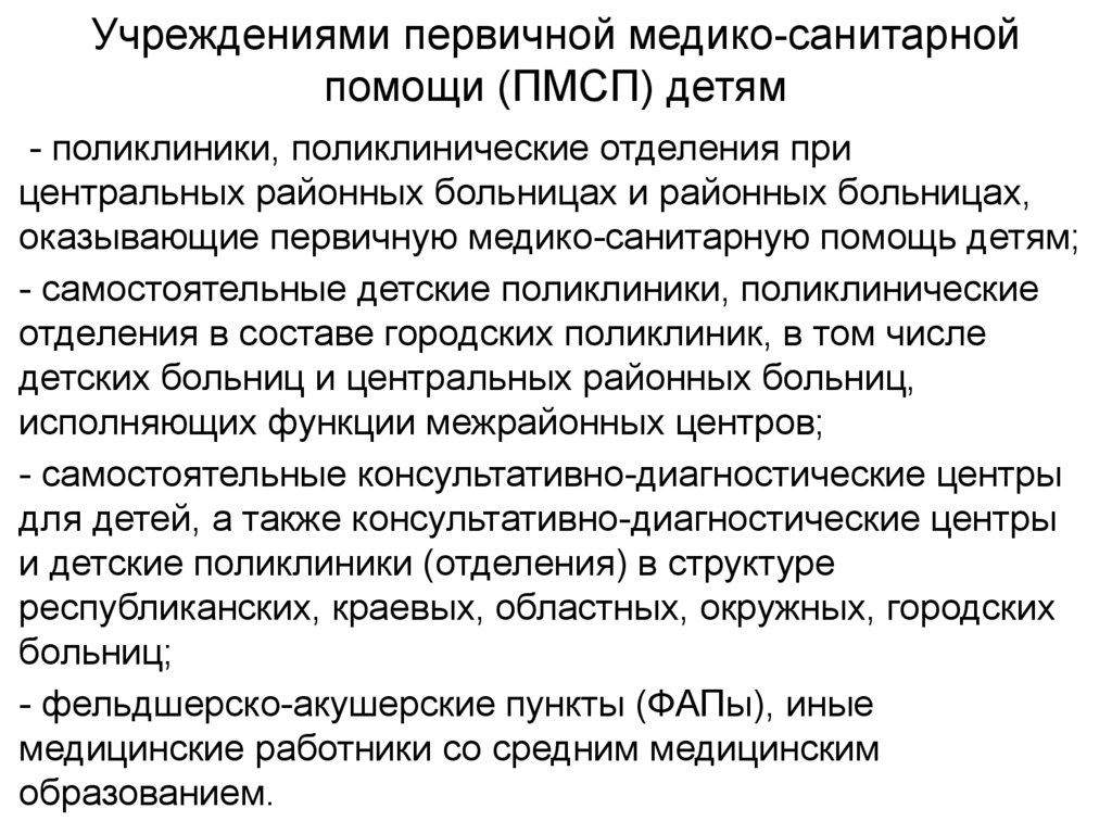 Учреждениями первичной медико-санитарнойпомощи (ПМСП) детям