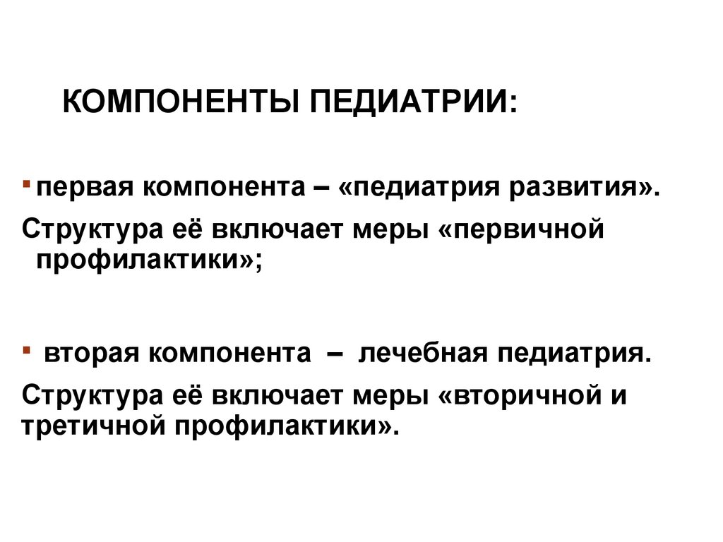 КОМПОНЕНТЫ ПЕДИАТРИИ:первая компонента – «педиатрия развития».