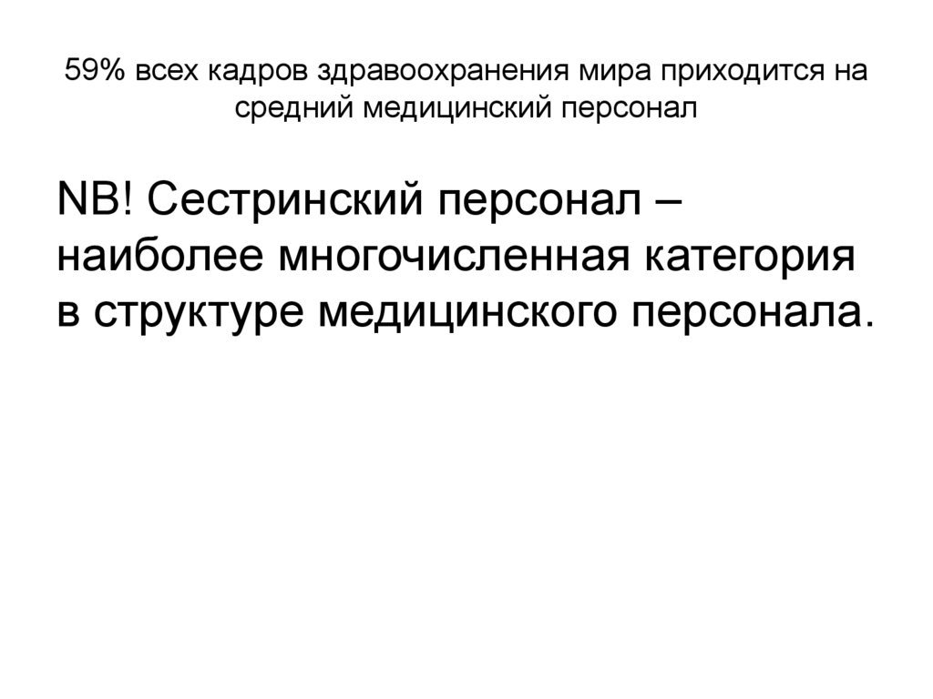 59% всех кадров здравоохранения мира приходится насредний медицинский персонал