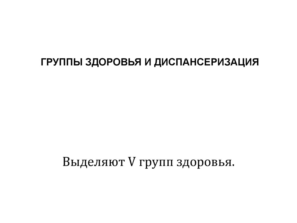 ГРУППЫ ЗДОРОВЬЯ И ДИСПАНСЕРИЗАЦИЯВыделяют V групп здоровья.