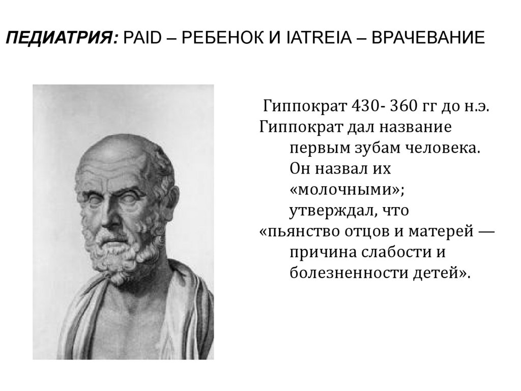 ПЕДИАТРИЯ: PAID – РЕБЕНОК И IATREIA – ВРАЧЕВАНИЕГиппократ 430- 360 гг до н.э.