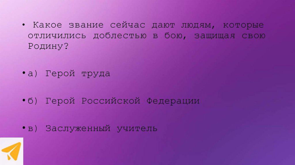 • Какое звание сейчас дают людям, которыеотличились доблестью в бою, защищая свою