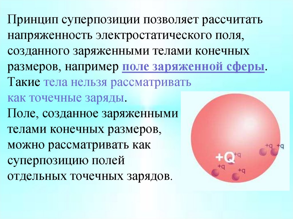 Принцип суперпозиции позволяет рассчитатьнапряженность электростатического поля,