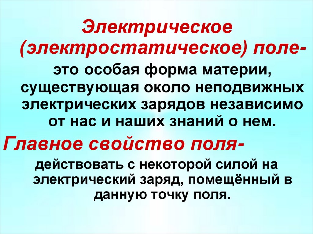 • Напряжённость поля равна отношениюсилы Кулона, с которой поле действует на