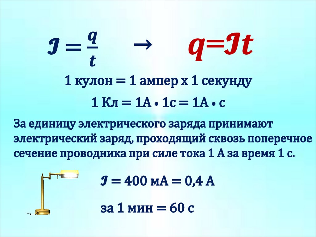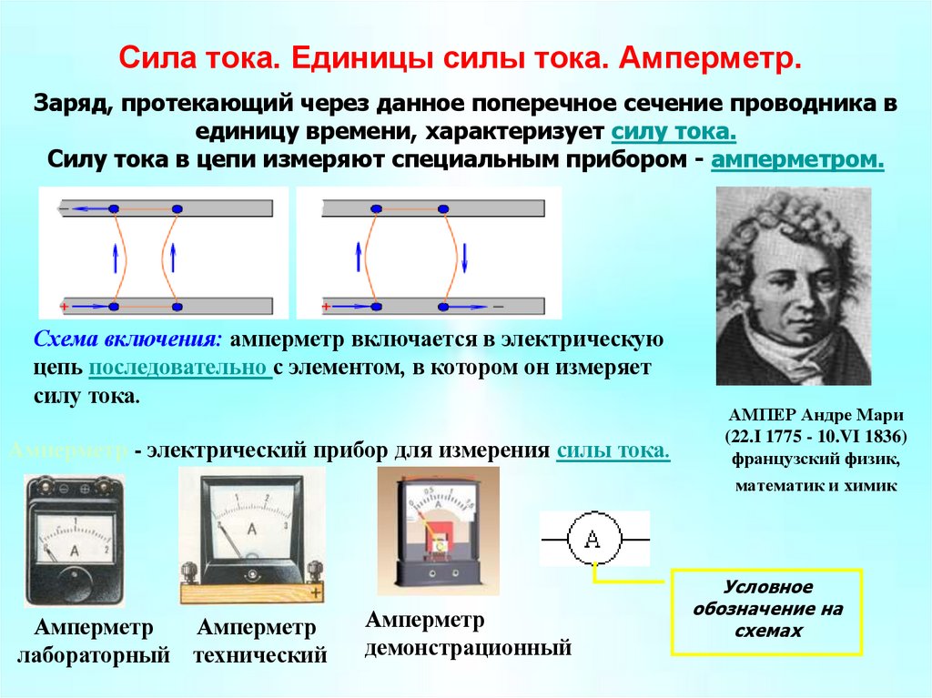Сила тока. Единицы силы тока. Амперметр.Заряд, протекающий через данное поперечное сечение проводника в