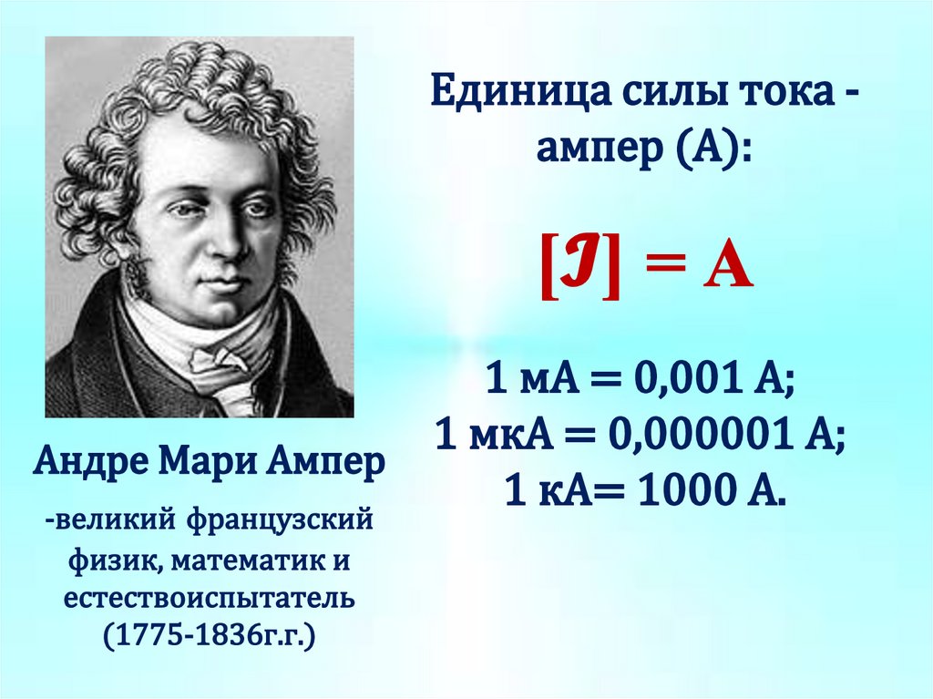 Силу тока в цепи измеряют специальным прибором - амперметром.