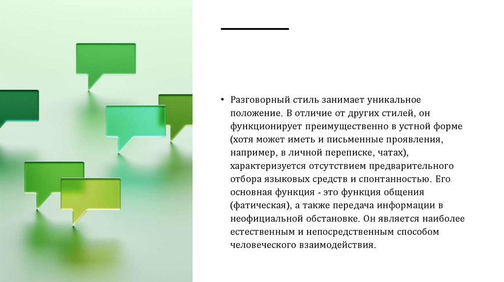 художественной литературе. • Разговорный стиль - для непринужденного,
