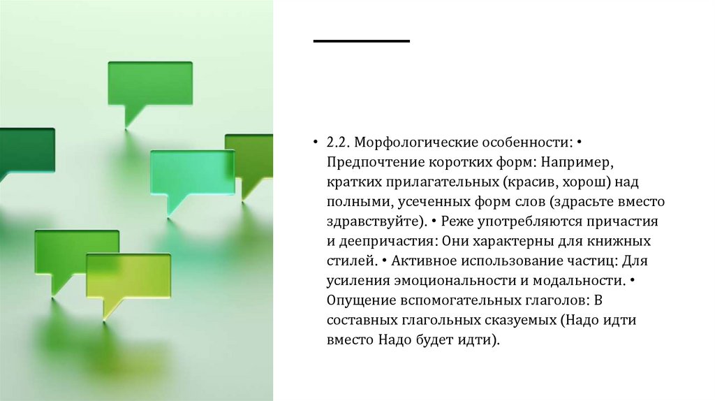 • 2.2. Морфологические особенности:Предпочтение коротких форм: Например,