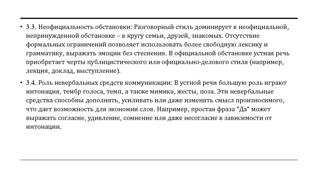 • 3.1. Непосредственность общения: Устная речь, как правило, реализуется в условиях