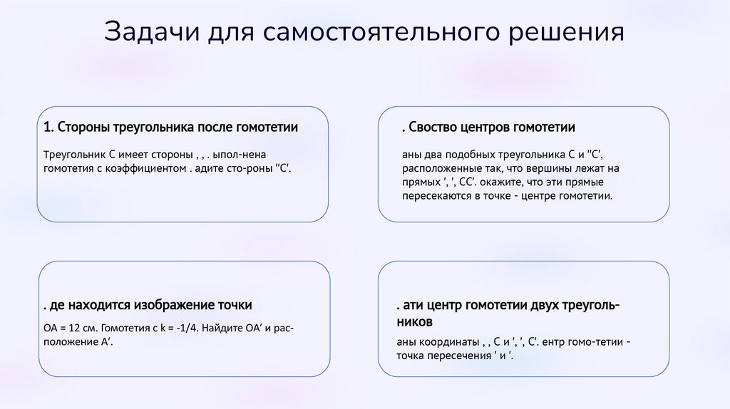 Задачи для самостоятельного решения1. Стороны треугольника после гомотетии
