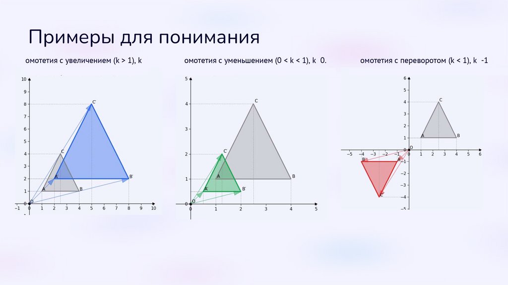 Примеры для пониманияГомотетия с увеличением (k > 1), k = 2