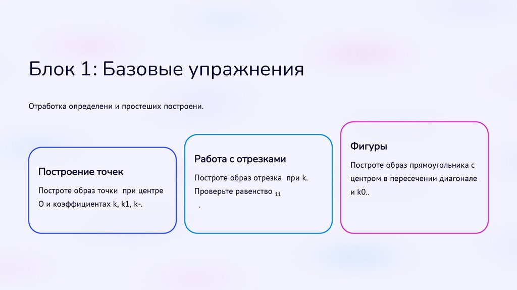 Блок 1: Базовые упражненияОтработка определений и простейших построений.