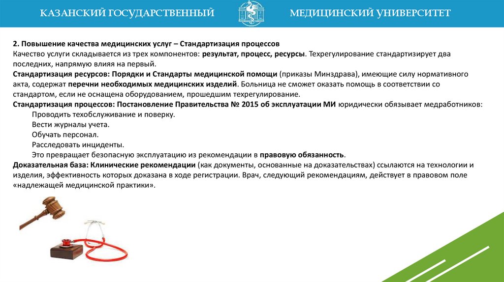 качество медицинских изделий, услуг и процессов. Оно включает в себя установление
