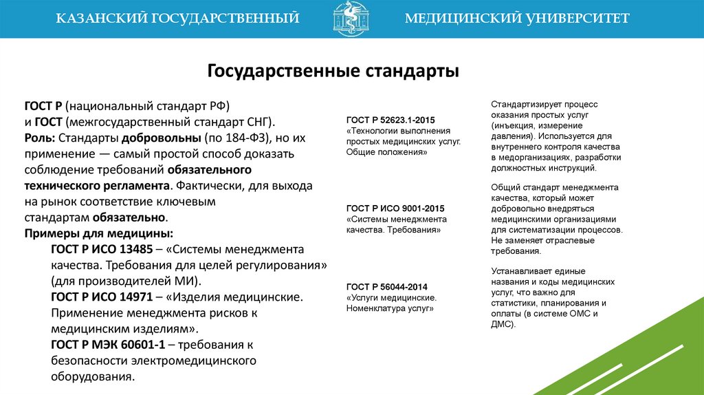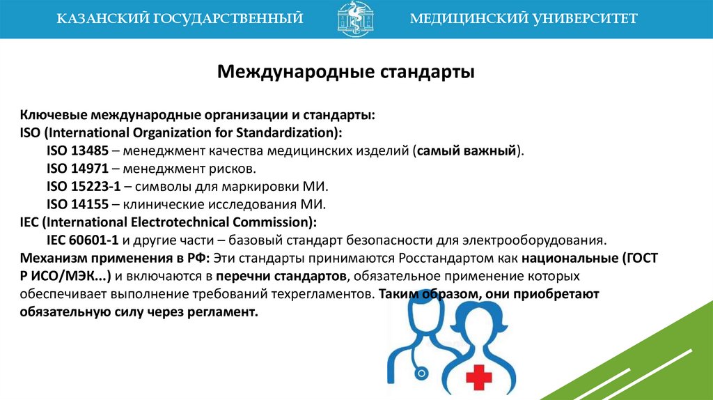 • Стандартизация: Разработка и применение стандартов для медицинских изделий,