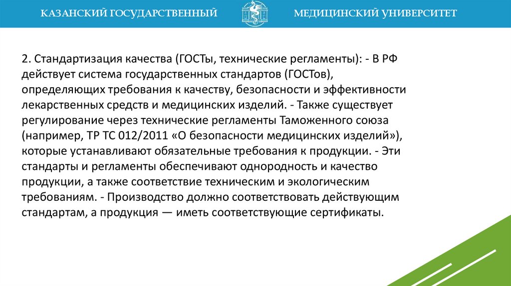 2. Стандартизация качества (ГОСТы, технические регламенты): - В РФ