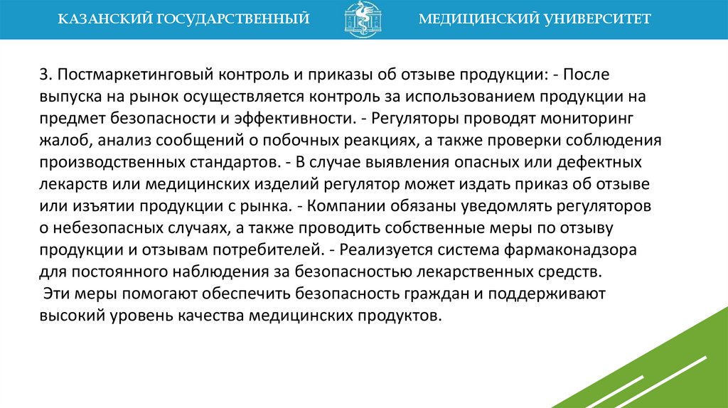 3. Постмаркетинговый контроль и приказы об отзыве продукции: - После
