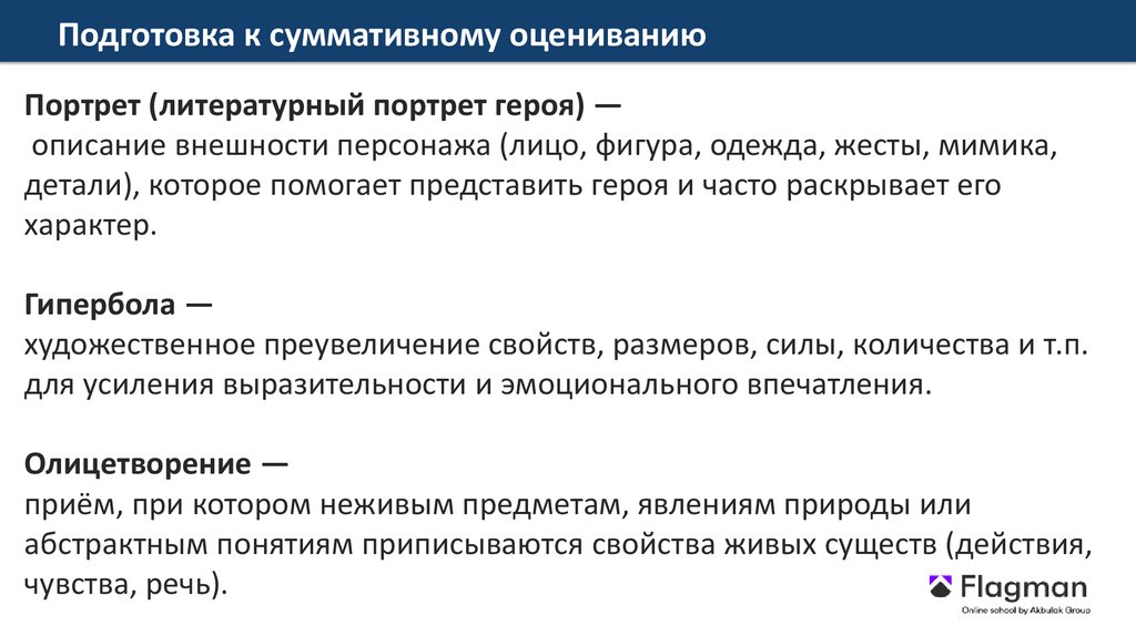 Подготовка к суммативному оцениваниюПортрет (литературный портрет героя) —