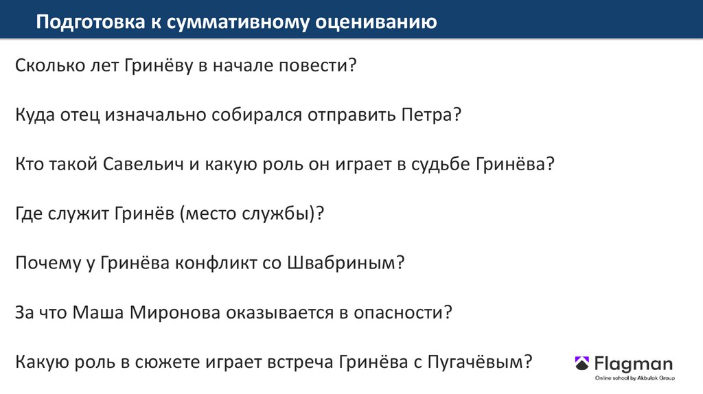 Подготовка к суммативному оцениваниюСколько лет Гринёву в начале повести?