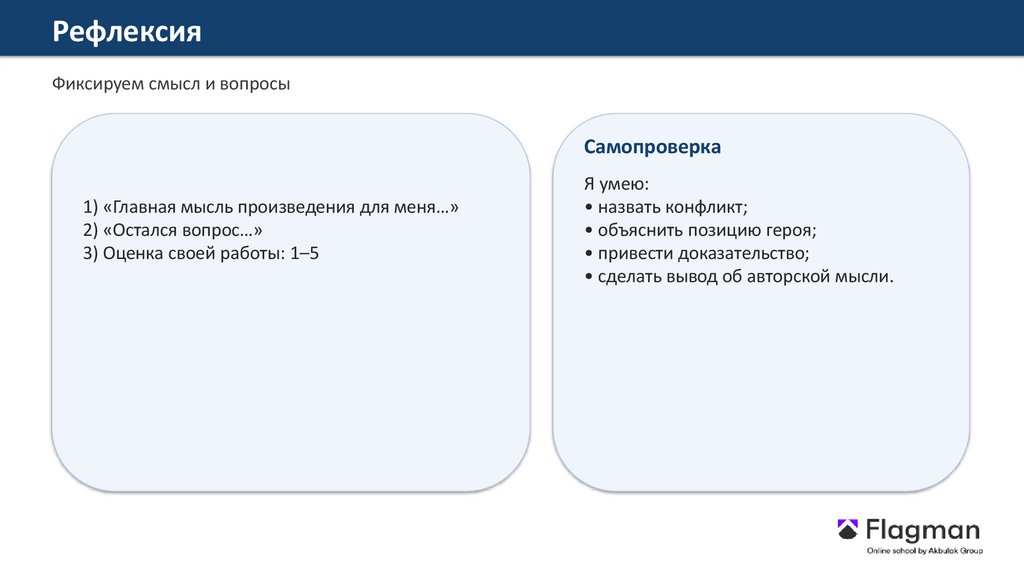 РефлексияФиксируем смысл и вопросы