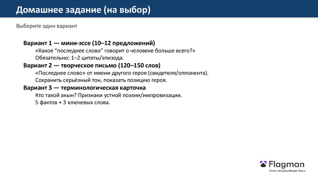 Домашнее задание (на выбор)Выберите один вариант