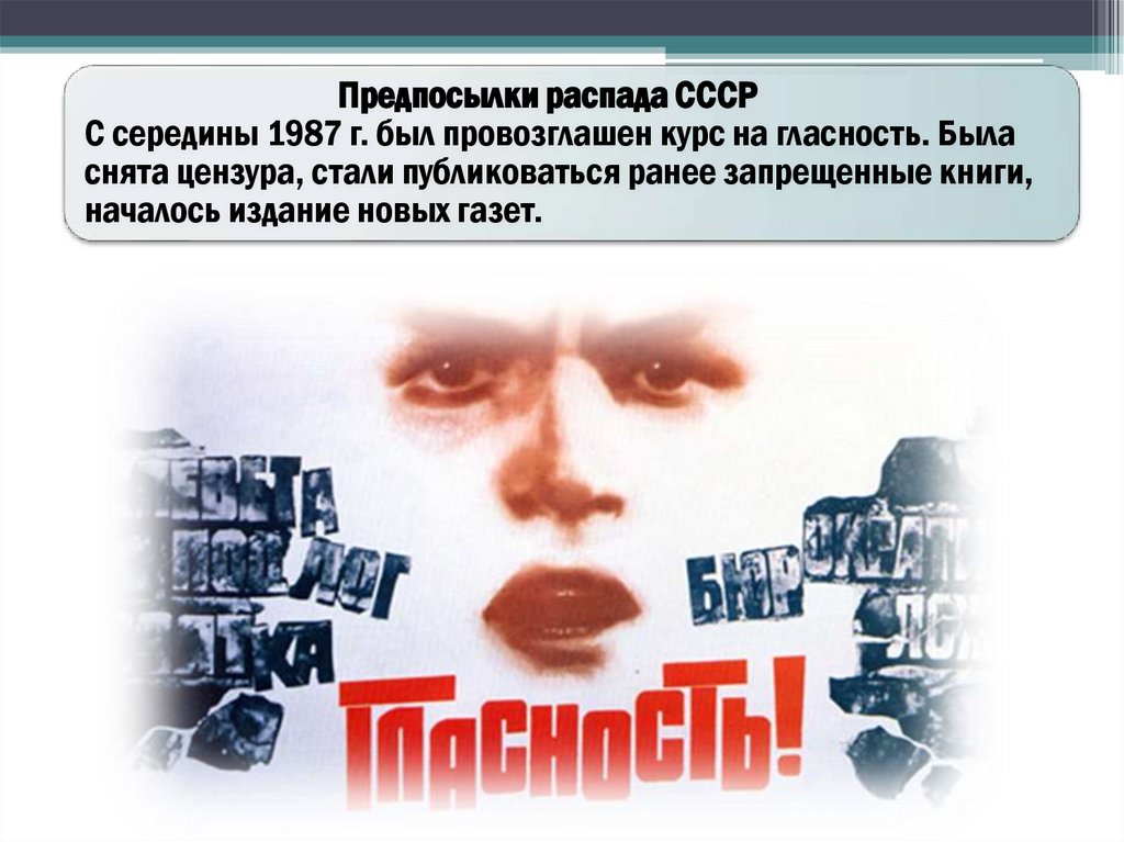 Предпосылки распада СССРС середины 1987 г. был провозглашен курс на гласность. Была