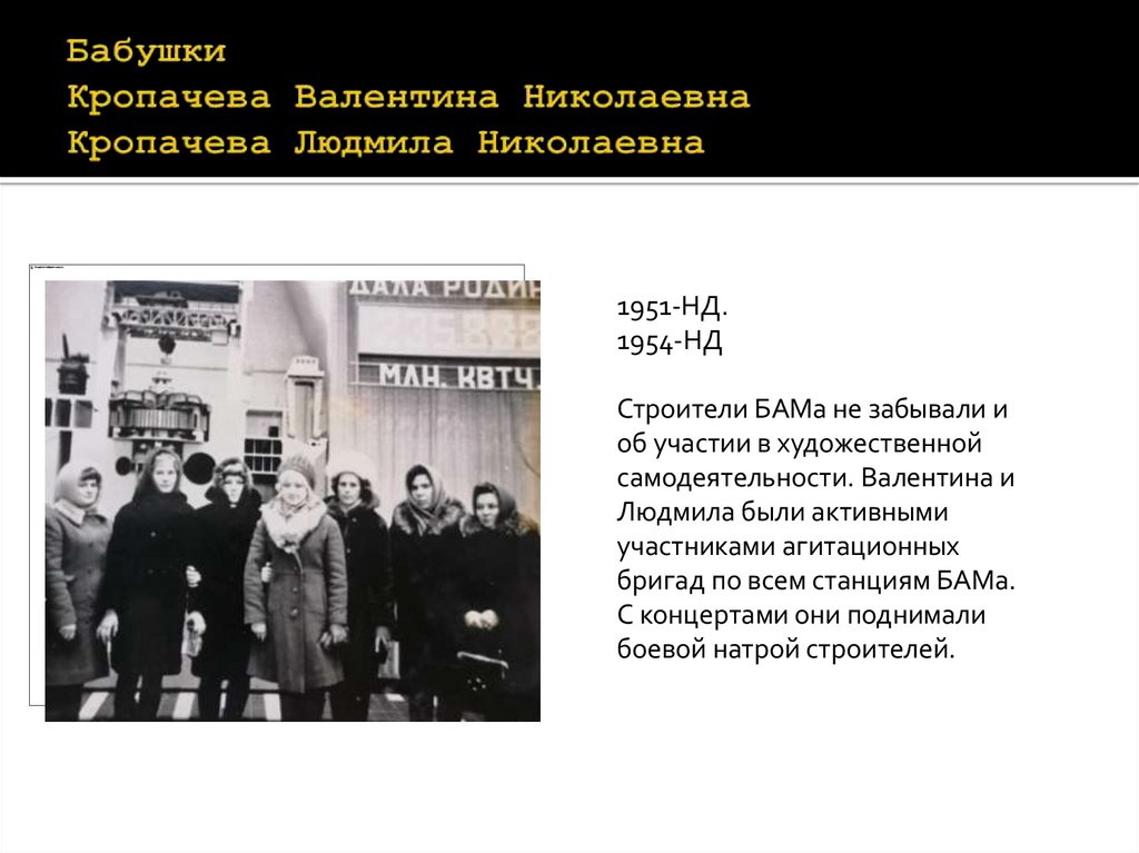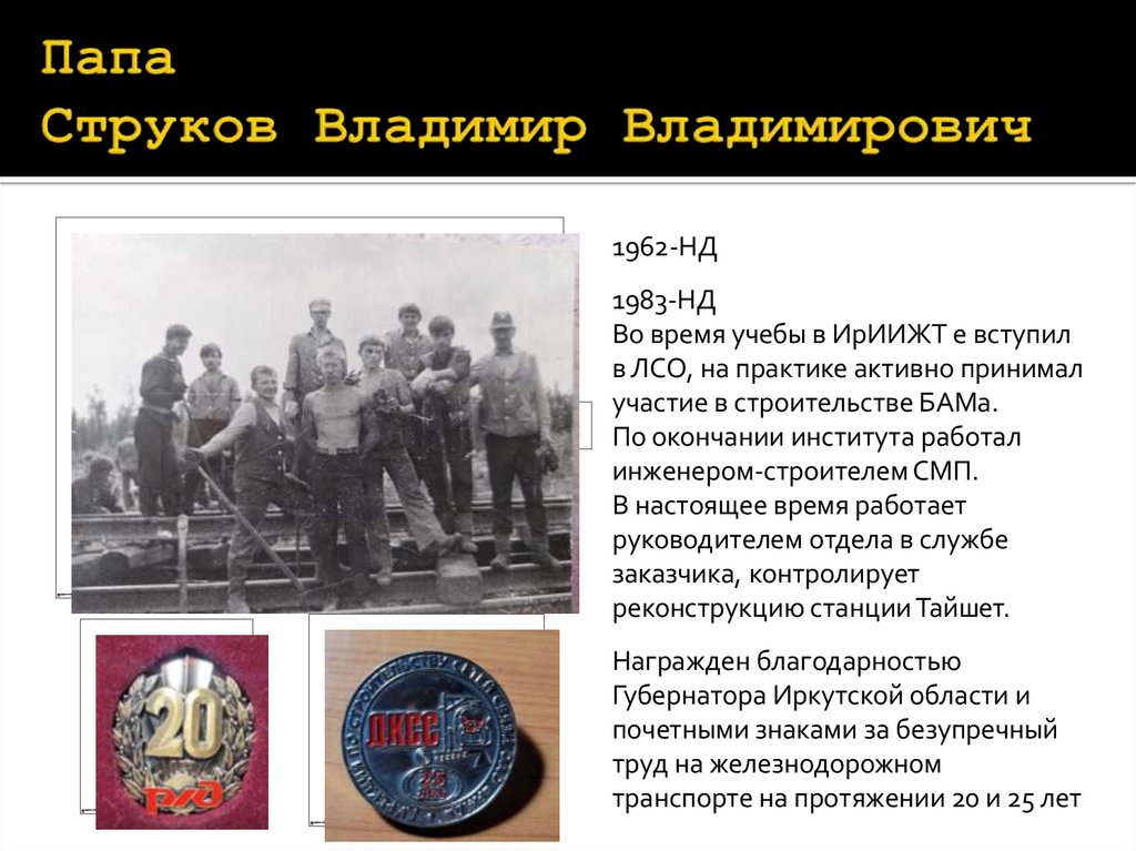 По окончании Института работала мастером по производству железобетонной шпалы поставляемой на БАМ.