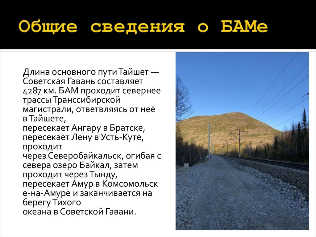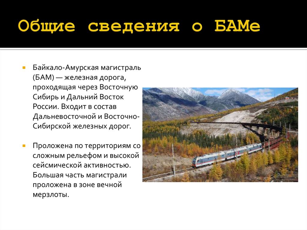 Байкало-Амурская магистраль(БАМ) — железная дорога,