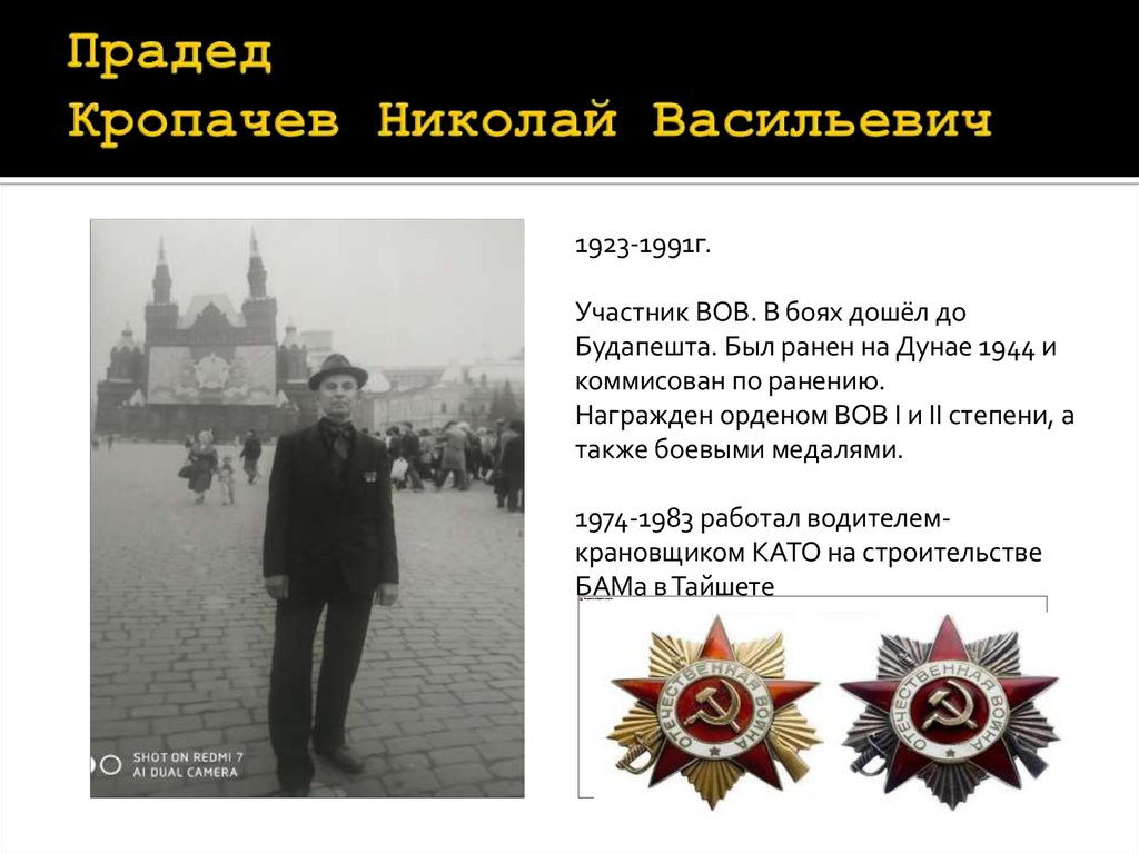 1923-1991г.Участник ВОВ. В боях дошёл до