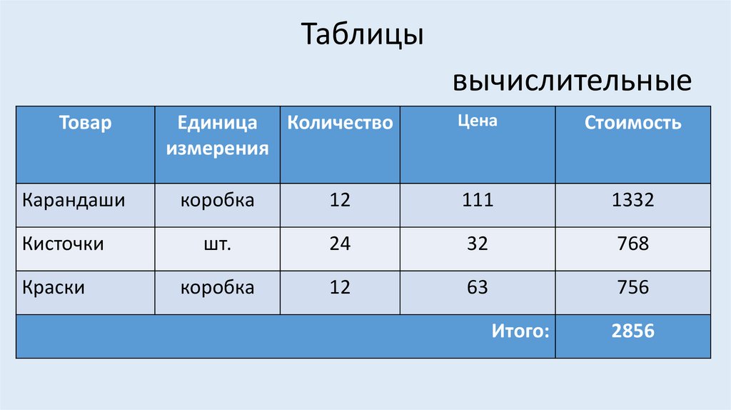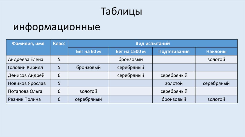 Презентация _Представление числовой информации в таблицах_ (5 класс)