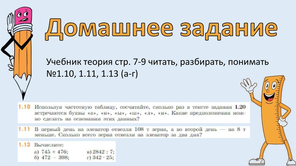 Учебник теория стр. 7-9 читать, разбирать, понимать№1.10, 1.11, 1.13 (а-г)
