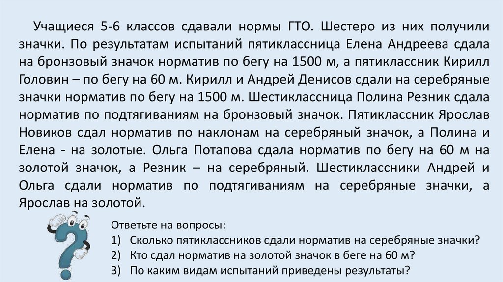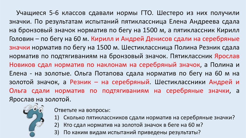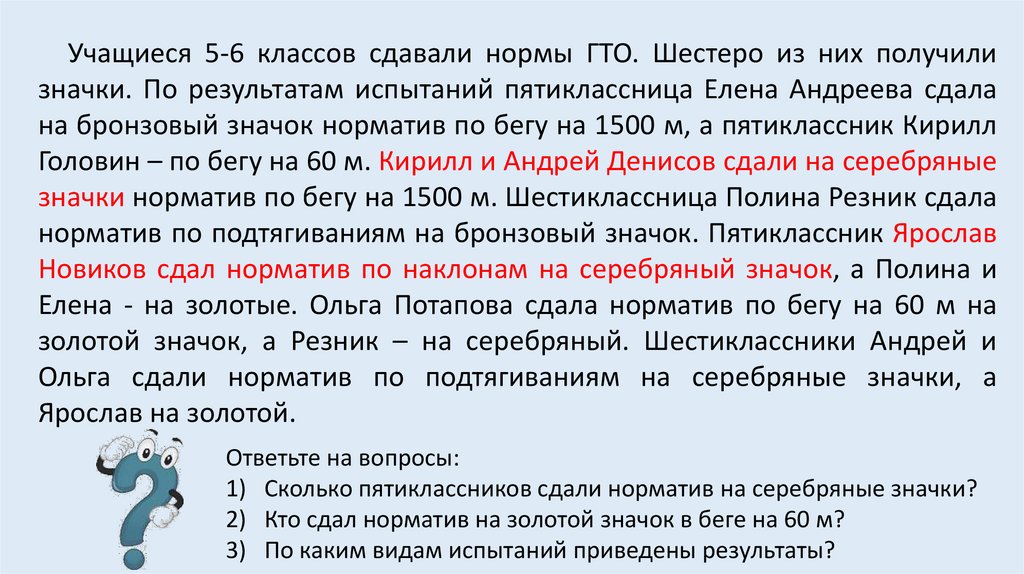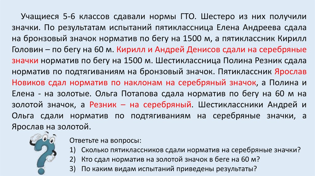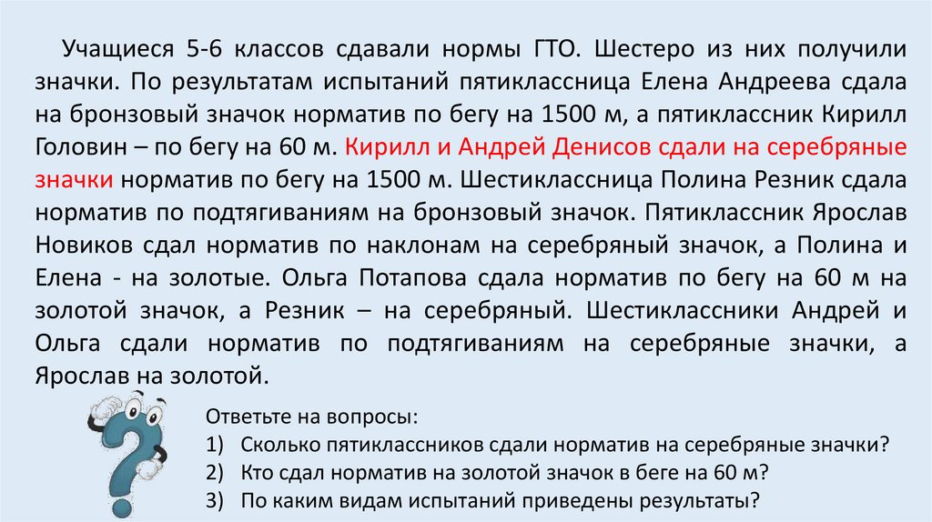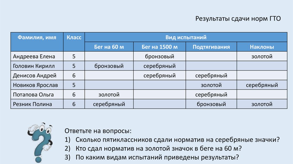 1) Сколько пятиклассников сдали норматив на серебряные значки?
