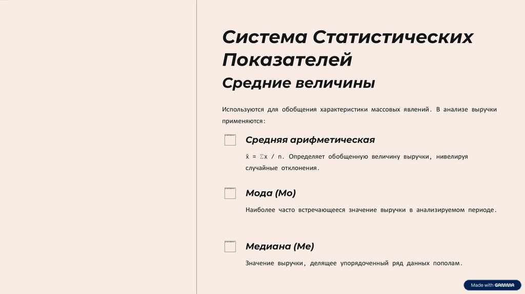 ̄ = Σx / n. Определяет обобщенную величину выручки, нивелируя