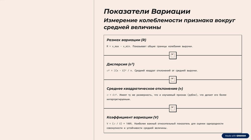 Показатели ВариацииИзмерение колеблемости признака вокруг