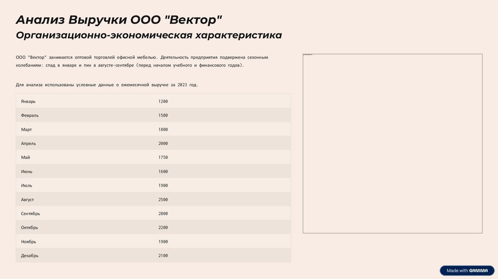 Анализ Выручки ООО "Вектор"Организационно-экономическая характеристика