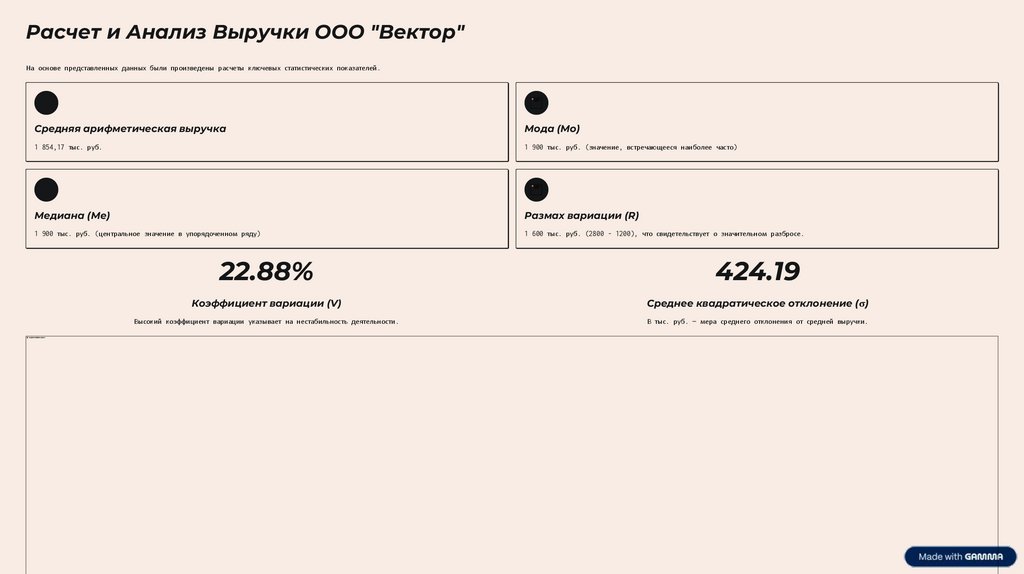 Расчет и Анализ Выручки ООО "Вектор"На основе представленных данных были произведены расчеты ключевых статистических показателей.