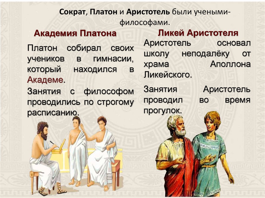 Сократ, Платон и Аристотель были ученымифилософами.Ликей Аристотеля