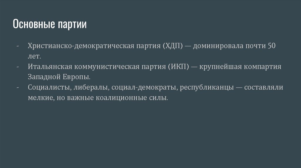 Христианско-демократическая партия (ХДП) — доминировала почти 50