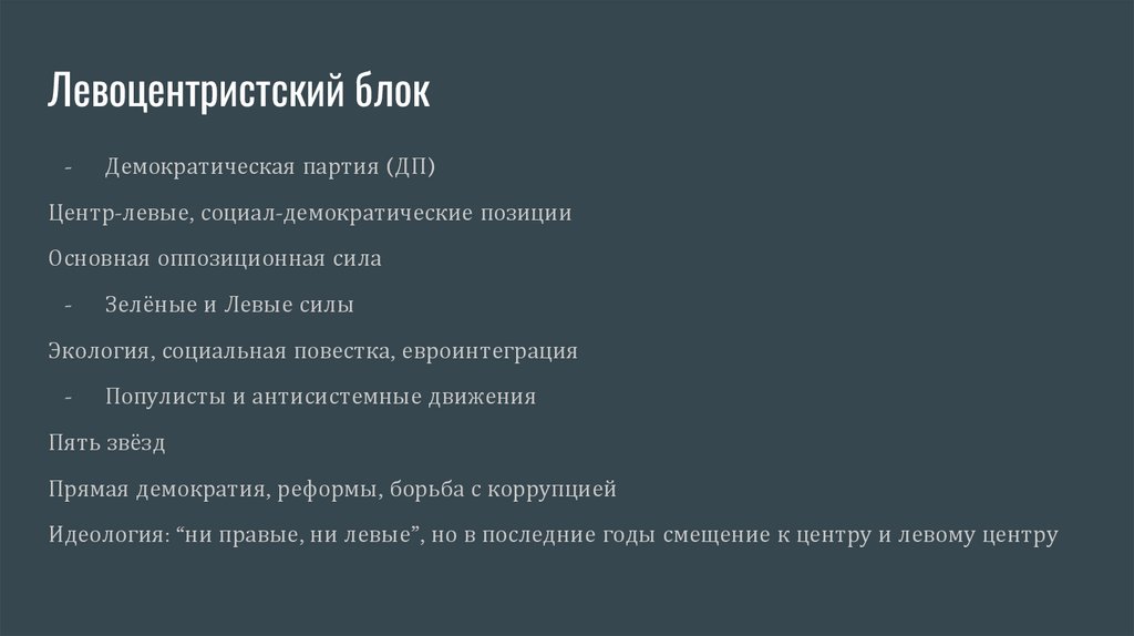 Посткоммунисты - Демократическая партия (ДП) — основная партия центр-левых.